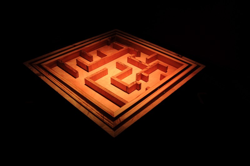 An ancient design derived from Greek mythology put into a modern, technological, interactive and entertaining installation. That's probably the best way to describe Labyrinth. With the help of 2 servo motors and an Arduino, users were able to control the game by standing at different locations in the room. The goal was to bring the ball from one side to the other side of the board without touching it.
